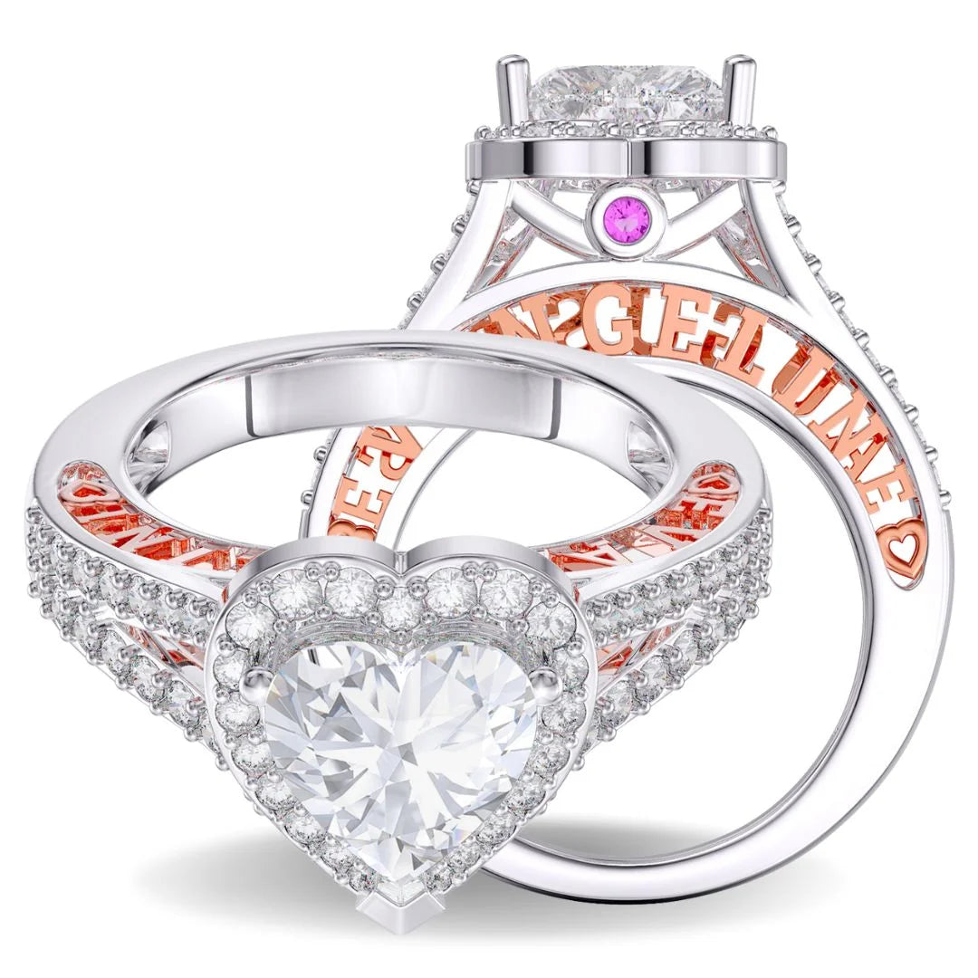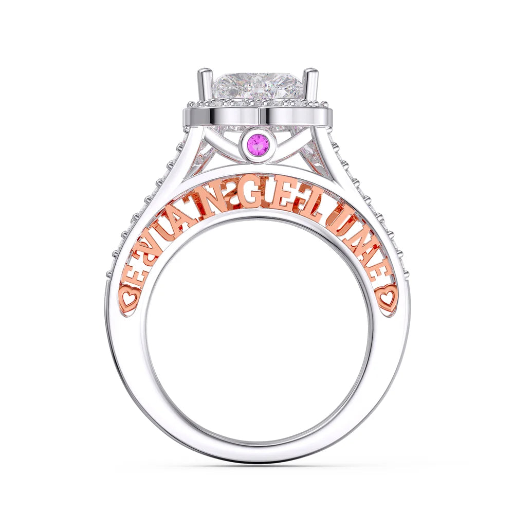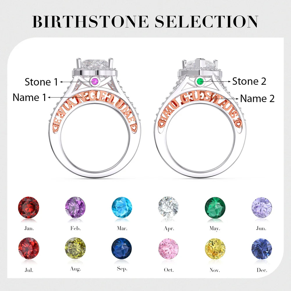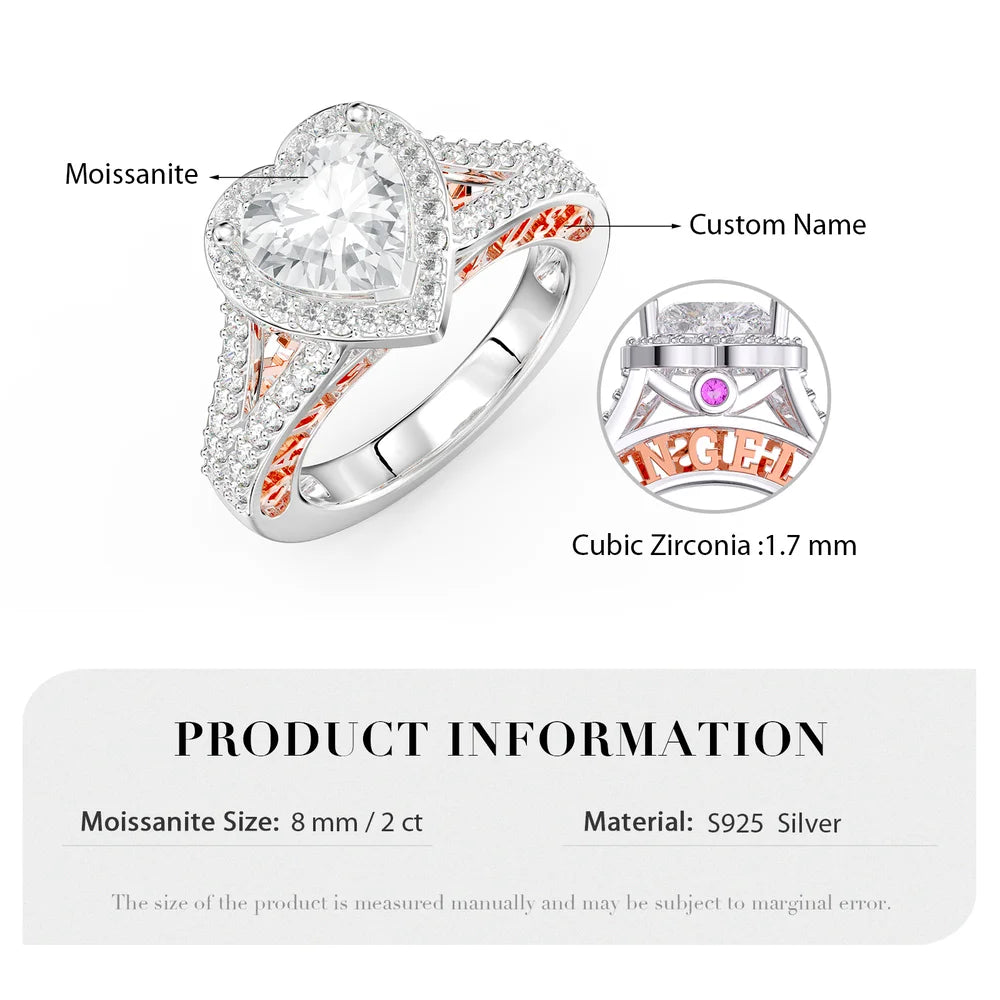 • 2 Carat Heart Moissanite Ring With 2 Custom Names And Birthstones