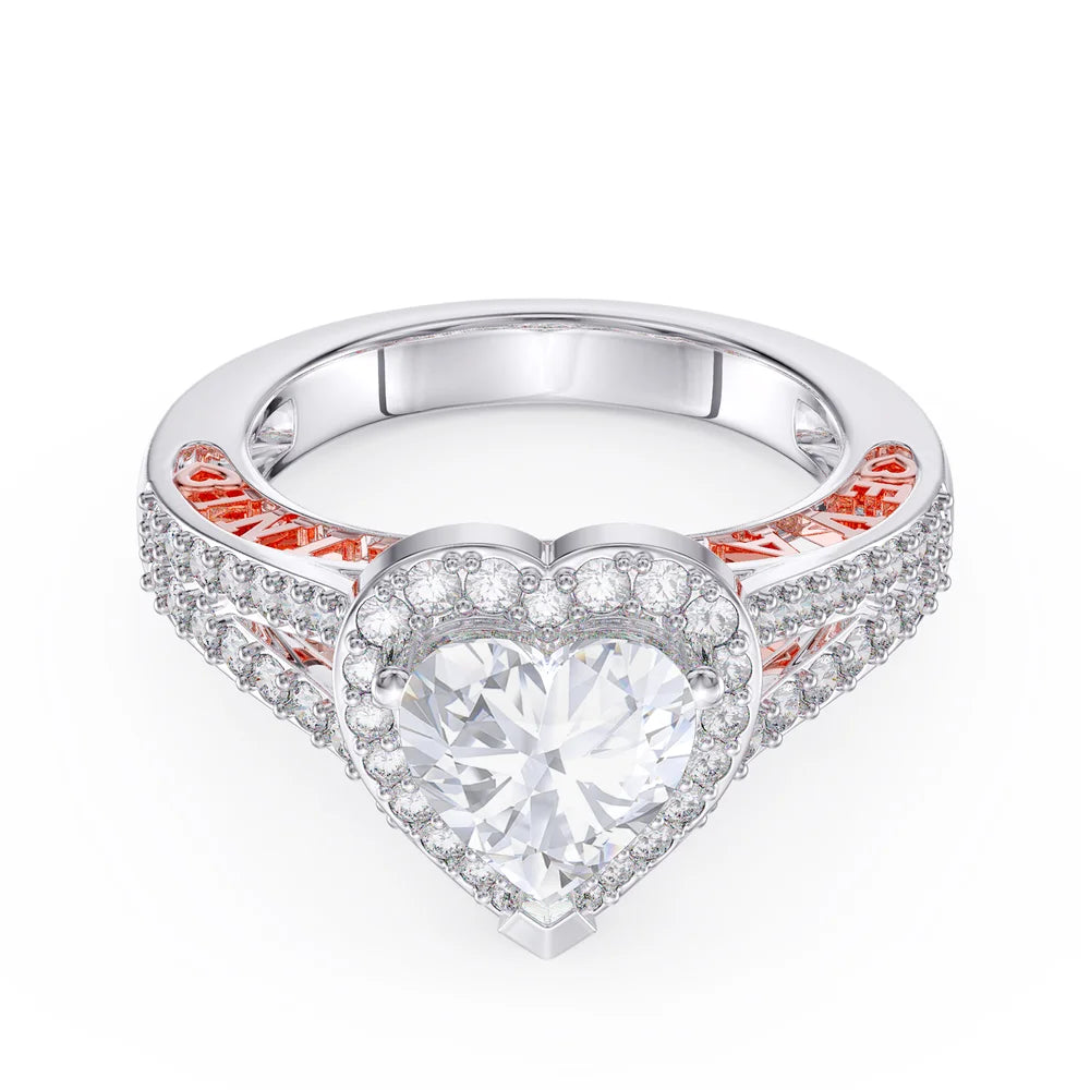 2 Carat Heart Shaped Moissanite Ring With 2 Custom Names And Birthstones