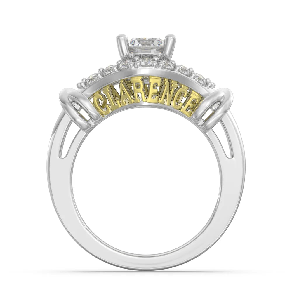 1 Carat Round Cut Moissanite Ring with 2 Custom Names