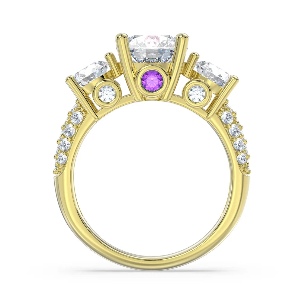 2 Carat Gold Moissanite Engagement Ring with 2 Custom Initials and Birthstones