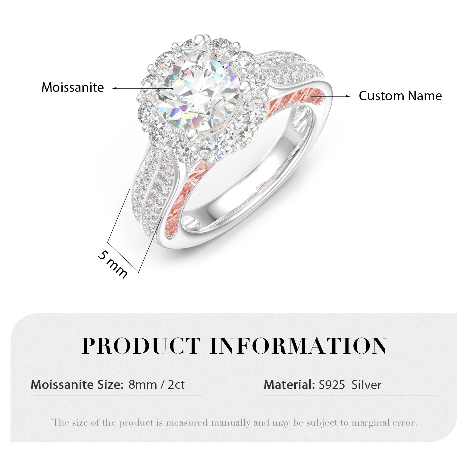 • Custom Moissanite Ring cannot be modified once you finish the payment
