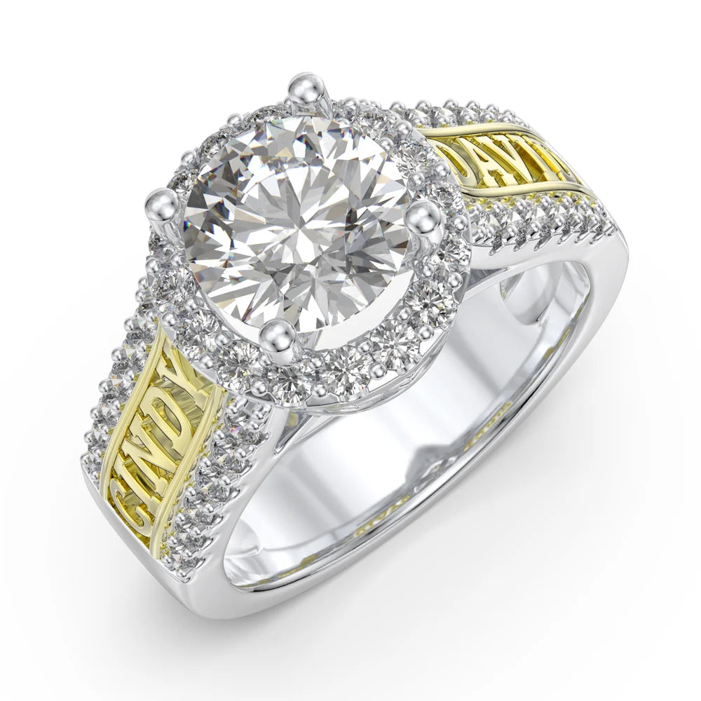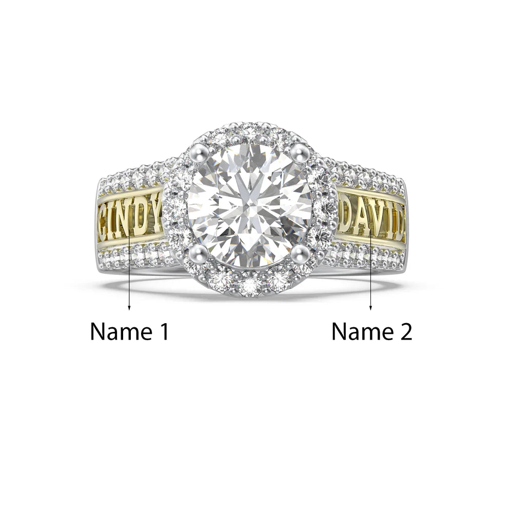 Custom 2 Carat Moissanite Engagement Ring with 2 Custom Names