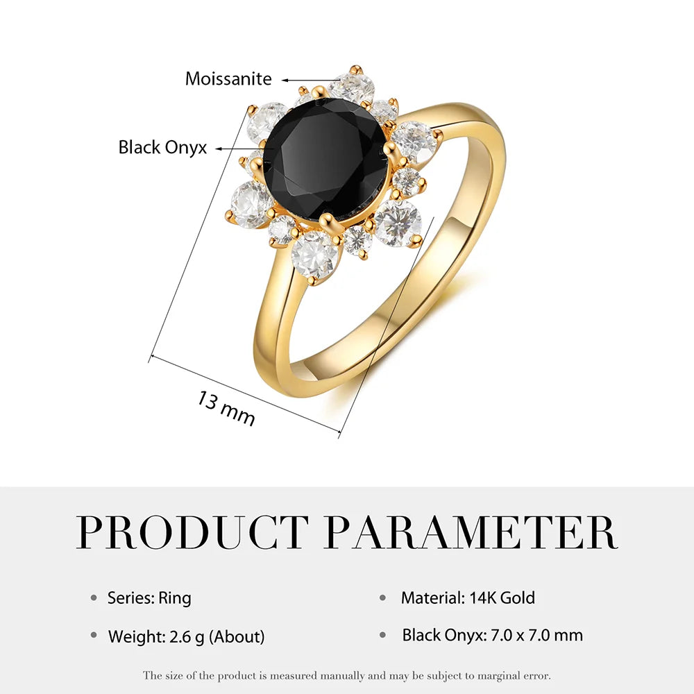 Black Onyx Ring Yellow Gold with Moissanite - 7x7mm Black Onyx Stone Ring